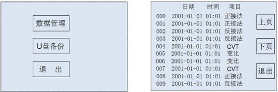 在主菜單點擊“數據管理”進入數據管理界面(如圖5-9),點擊“數據查詢”進入。進入數據存放菜單(如圖5-9)后,按上、下鍵移動光標至想要查看的數據項目上,(儀器所保存的數據均是按照測量時間的先后所排列的,第000個數據即最新數據,第199個數據即最老數據。)再點擊相應的數據,進入數據打印項目,在此菜單里面可以按上,下鍵翻頁至相應的數據序號上,可對數據進行打印操作。