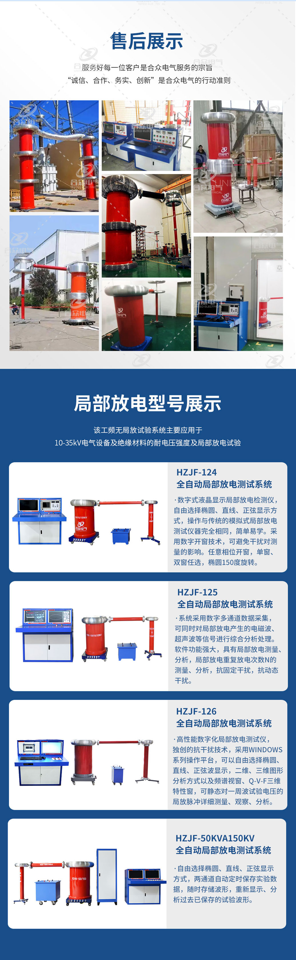 合眾電氣作為無局放耐壓試驗(yàn)裝置生產(chǎn)制造的老廠家,研發(fā)技術(shù)底蘊(yùn)深厚,售后服務(wù)體系完備完善,目前已為千余家客戶提供過無局放耐壓試驗(yàn)裝置相關(guān)售后服務(wù)。
