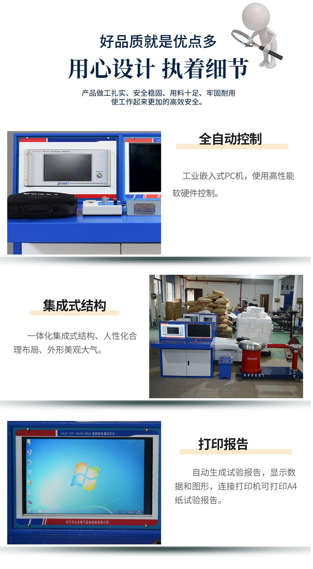 該局部放電測(cè)試系統(tǒng)置適用于供配電系統(tǒng),電力變壓器制造廠、工礦企業(yè)、科研部門等,對(duì)各種高壓電氣設(shè)備、電器元件、絕緣材料進(jìn)行工頻或直流高壓下的絕緣強(qiáng)度試驗(yàn),是高壓試驗(yàn)中必不可少的重要設(shè)備。巧妙的將無(wú)局放試驗(yàn)裝置(變壓器控制部分)和局部放電檢測(cè)儀結(jié)為一體,外觀亮麗輕巧,使測(cè)試過程更加方便簡(jiǎn)單。