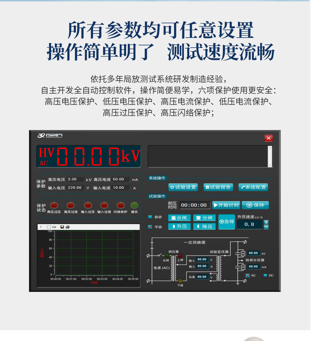 10、可設(shè)置多級階段式升降壓,設(shè)置好目標(biāo)電壓后,系統(tǒng)自動升降壓,無需人工干預(yù),并可實(shí)時顯示升壓曲線圖。