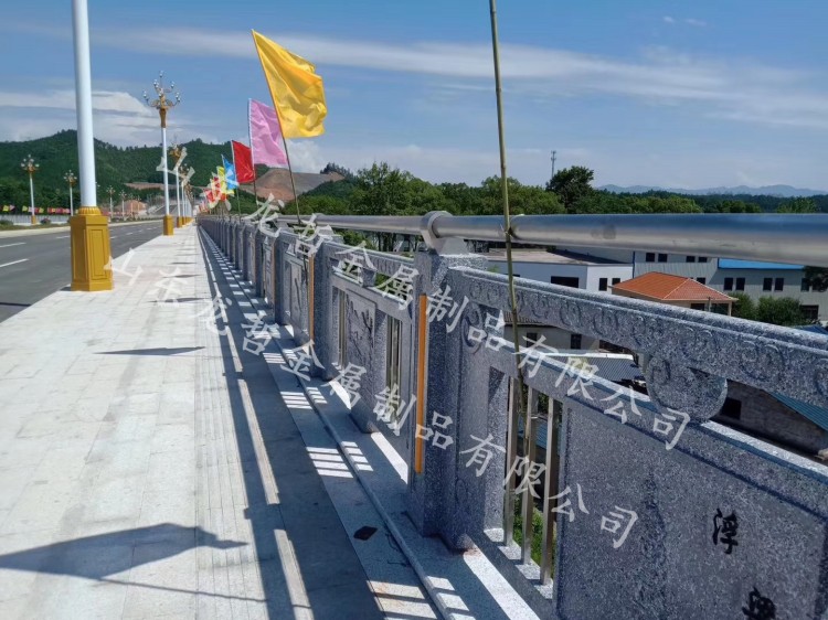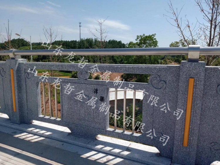 鑄造石欄桿可以和其他形式的護欄組合成不同形式的組合護欄,被廣泛用于橋梁、河道、市政、園林景觀護欄中,設計美觀,還可根據實地要求添加各類象征元素。立柱采用鑄造石欄桿,有著造型美觀、時尚、環保、不易變形、造價低廉的性能優點;橫管和豎管采用不銹鋼復合管,表面經過靜電烤漆處理,抗沖壓性強,絕緣阻燃,經久耐用。融入浮雕板的設計,既體現了護欄防護功能,又反映了我國的民族文化源遠流長,造型獨特。